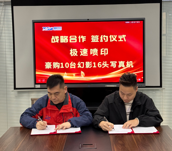 昨日,极速喷印孙总一行人莅临郑州新世纪,订购了10台幻影G1616十六头写真机,现场举行了隆重的签约仪式。此次合作不仅是双方基于技术实力与发展理念的深度契合,更将为广告喷印行业的效率革新与品质升级注入强劲动力。