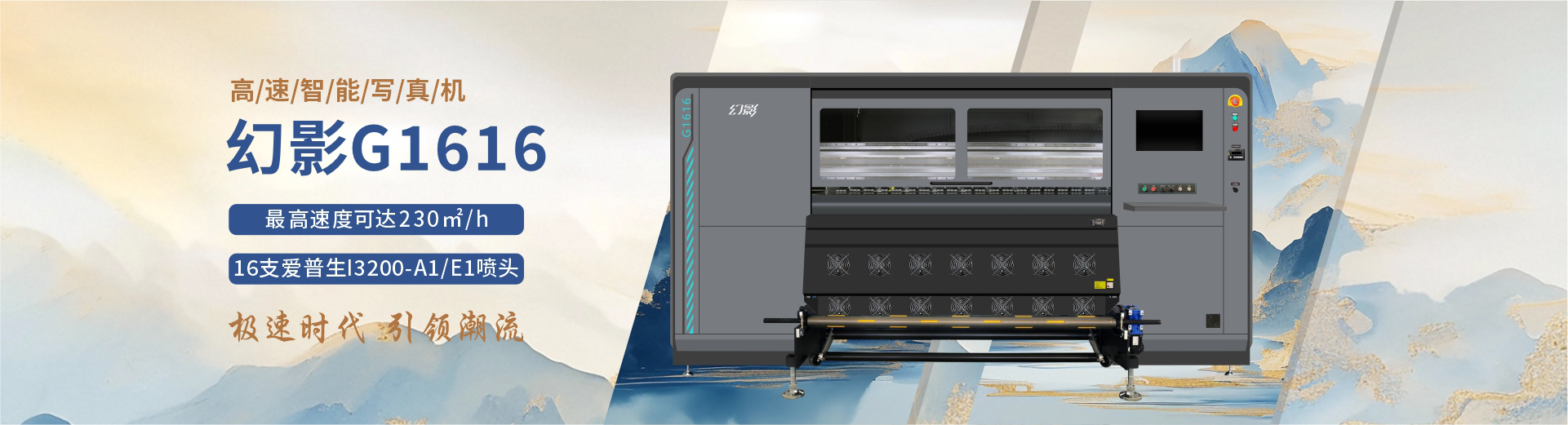 幻影G1616高速写真机,汇聚天彩厚积多年的研发精髓,搭载16支爱普生工业级I3200喷头,以230㎡/h的惊世速度,宣告“瞬时产能”时代的到来。它不仅仅是一台机器,更是您征服巨额订单、决胜蓝海市场的战略重器。